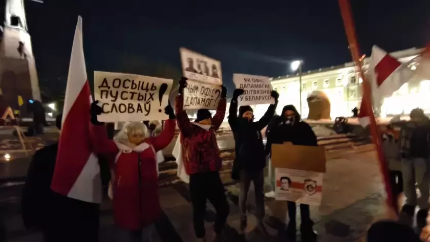 Несколько бывших политзаключенных пришли на акцию памяти погибших добровольцев с плакатами против Тихановской