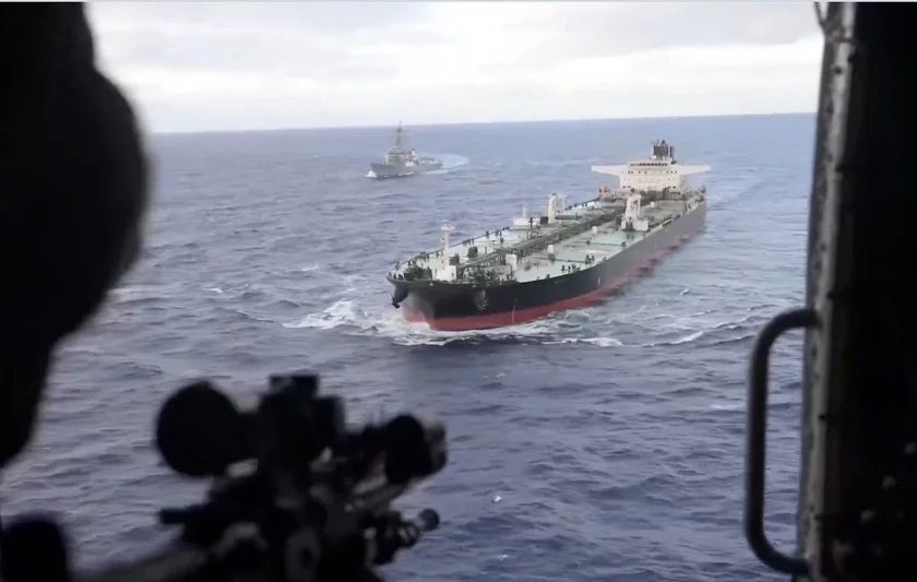 «Корабль скрылся, мы двинулись за ним. Министерство обороны отслеживало и преследовало это судно от Карибского моря до Индийского океана», — отметили в Министерстве обороны США, приложив видео задержания судна.