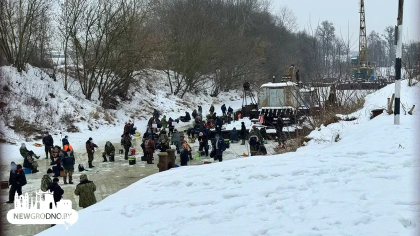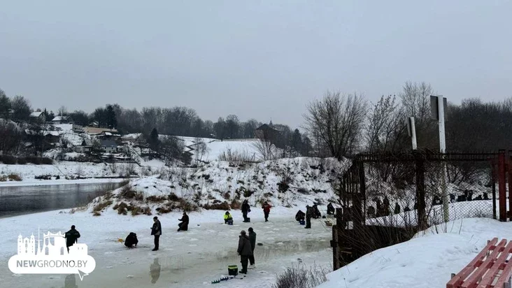 Необычную, но традиционную картину вчера заметили в Гродно: десятки человек собрались на льду небольшой затоки Немана.