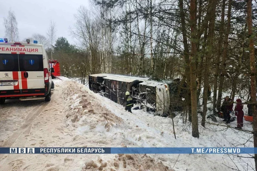 По предварительной информации, 45‑летний водитель на закруглении дороги не справился с управлением, в результате чего автобус съехал в кювет и перевернулся.