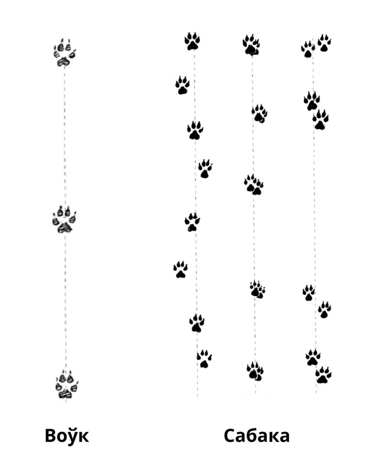 Волчьи следы редко встречаются в непосредственной близости от следов человека, в то время как собачьи следы часто появляются рядом с человеческими следами.