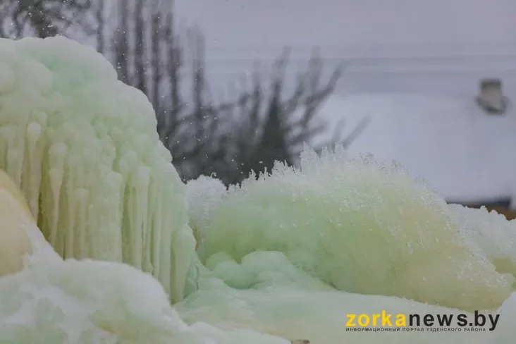 Около водонапорной башни в Узденском районе выросли причудливые ледяные фигуры. Они попали в объектив фотографа «Чырвонай зоркі».