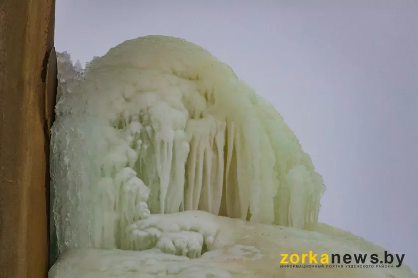 Всё началось с обычной утечки воды. Но ударили морозы и превратили неприметный поток в ледяные скульптуры. Замерзая постепенно, вода создала целый каскад прозрачных и молочно-белых форм. Здесь можно увидеть и подобие сталактитов, и застывшие волны, и даже удивительные фигуры.