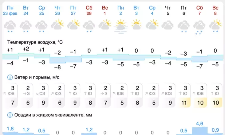 Погода в Минске на следующие две недели по данным gismeteo.by