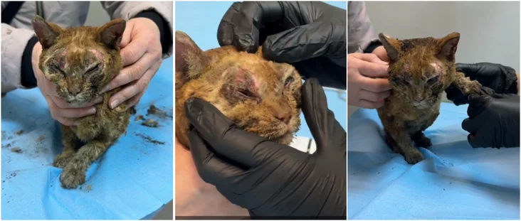 У животного обгоревшая мордочка и лапы. Кошку сразу же отвезли к ветеринарам, где ей оказали первую помощь.