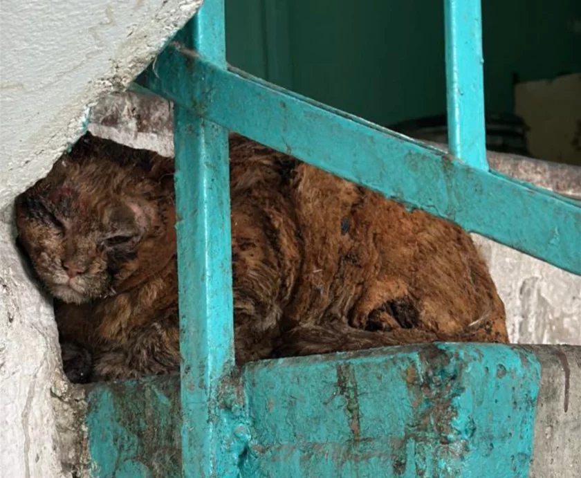 А обгоревшая кошка просидела на лестнице, пока ее не забрали волонтеры — по их словам, это произошло через 12 часов после пожара. Все это время на нее никто не обращал внимания.