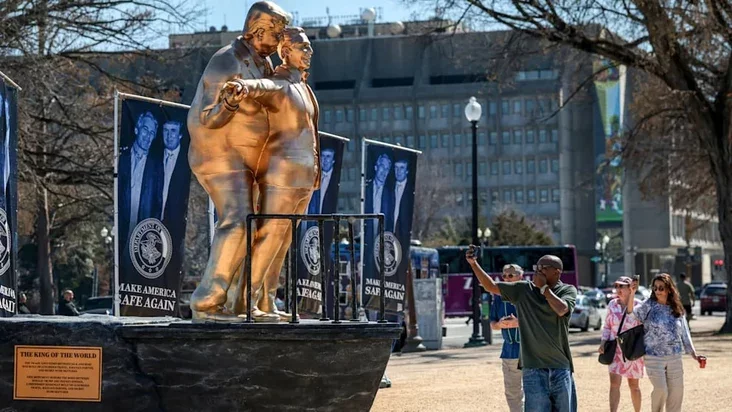Возле Конгресса США поставили статую Трампа в объятиях Эпштейна на носу «Титаника»