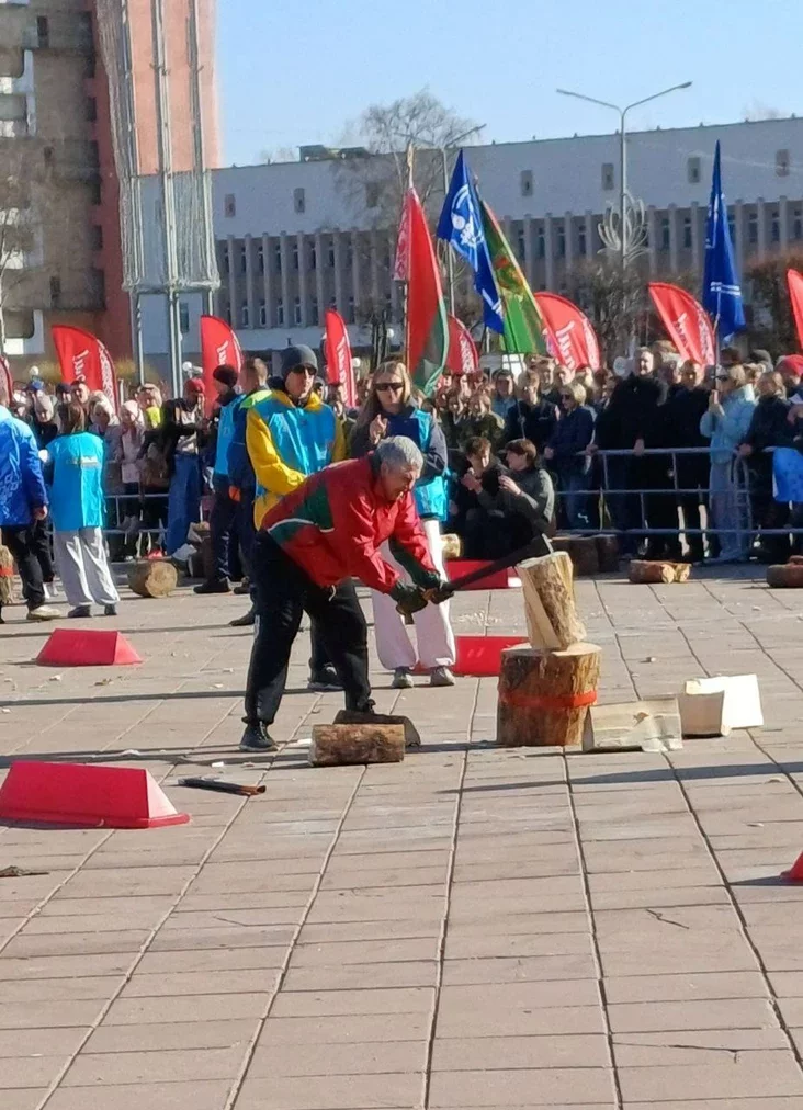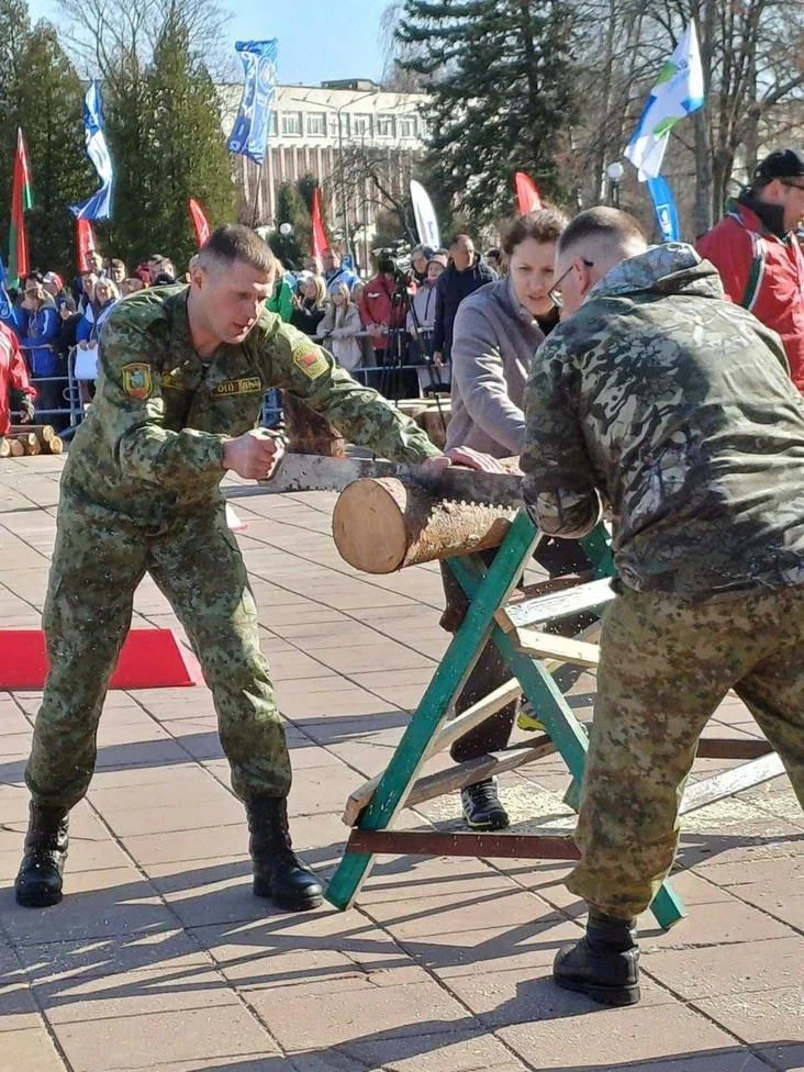 14 марта на новополоцкой площади Строителей в центре города провели соревнования по рубке дров среди организаций, предприятий и учреждений города.