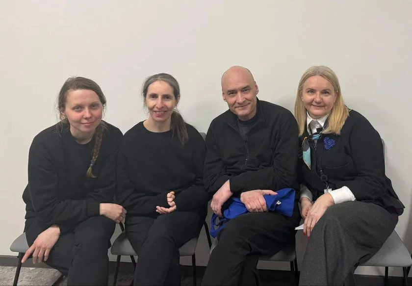 Правозащитный центр «Вясна» опубликовал совместное фото освобожденных сегодня трех своих сотрудников — Марфы Рабковой, Насты Лойки и Валентина Стефановича.