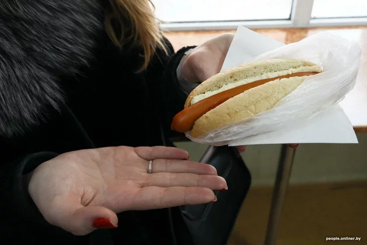 — А дайце мне гэты хот-дог з каўбасой, пальцам пханай.