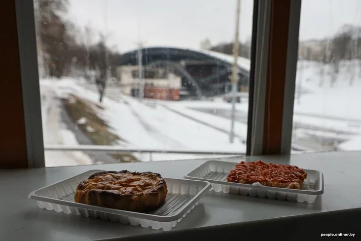 Следующая локация. Этот павильон расположен в самом центре города — в прямом смысле слова: из окна открывается вид на Витебский амфитеатр. Здесь пробуем смаженку и пиццу, а заодно представляем, что наблюдаем за каким-нибудь концертом, на который был полный солд-аут за пять минут.