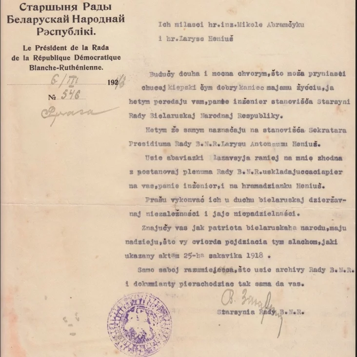 Секретарь Рады Белорусской Народной Республики (БНР) и Попечительский совет Белорусской библиотеки и музея имени Франциска Скорины в Лондоне объявили о передаче части государственного архива БНР, который был сохранен Председателем Рады БНР Миколой Абрамчиком, в библиотеку.