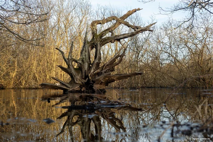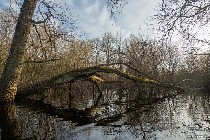 У Припяти есть много старых русел, в том числе тысячелетних. Река по ним уже давно не течет, но на ее месте появляются другие водоемы — старичные озера. Их на территории нацпарка «Припятский» 540. Но мы сегодня исследуем не озеро, а затопленный лес.