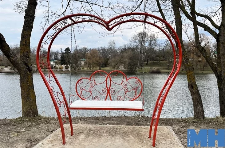 Инициатива о благоустройстве этой локации исходила от местных жителей. Уже проложены пешеходные дорожки. Установлены главные арт-объекты в виде объемного кованого сердца и «скамьи любви», а в прогулочной зоне — скамейки с урнами и шестигранная опора с пятью подвесными качелями.