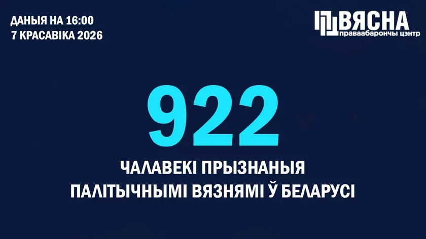 7 апреля правозащитники признали политзаключенными еще 17 человек. Общее количество людей, которые на сегодня признаны в Беларуси политзаключенными, составляет 922 человека.