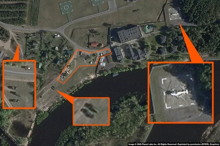 О местах, где он останавливался на ночь, его пресс-служба не сообщала. Однако, как выяснила «Свабода», по крайней мере одна остановка была сделана в его резиденции в деревне Лясковичи Петриковского района. Об этом свидетельствует спутниковый снимок, сделанный компанией Planet Labs 27 апреля в 8:53 утра.